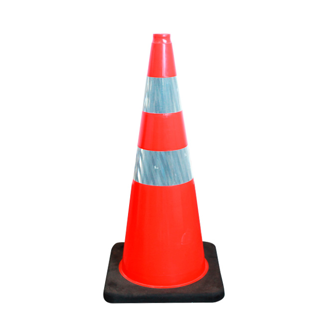 Cone rodoviário de sinalização de trânsito flexível de PVC. Utilizado para sinalização de ruas, rodovias e estradas como limitação de áreas, com o objetivo de garantir a segurança e organização do local.